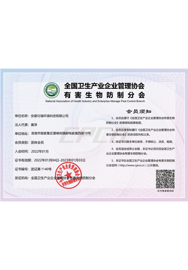 凱瑞蟲控擁有質量管理體系認證、環(huán)境管理體系認證、國家有害生物資質等各項證書